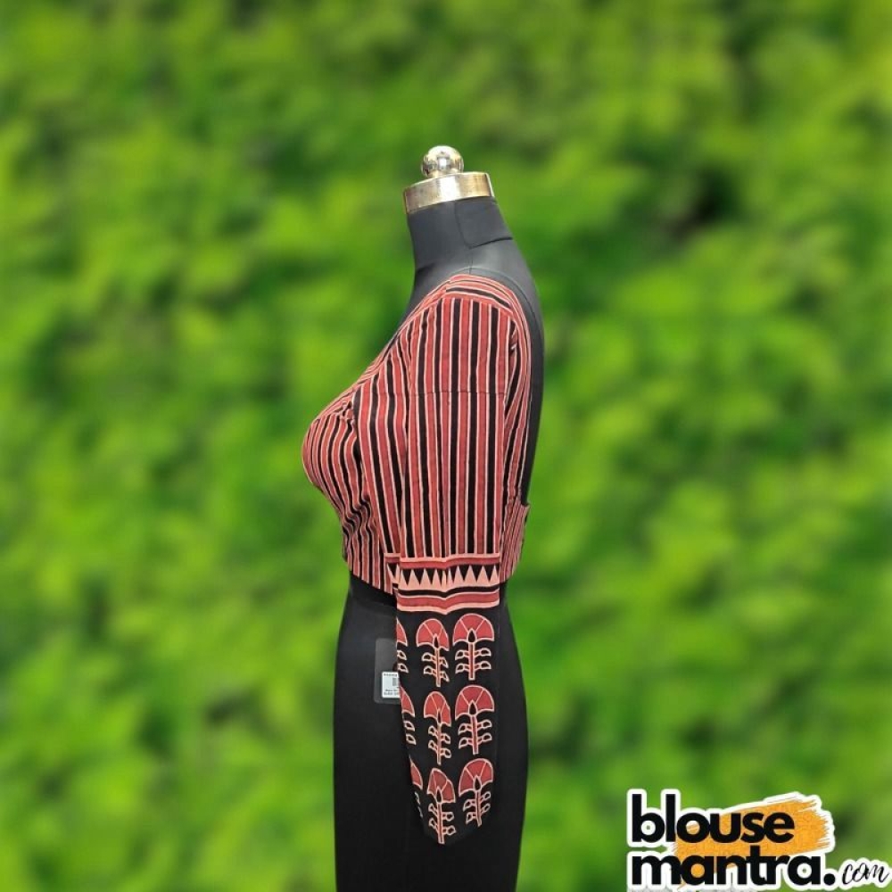 Black Ajrakh | Stripes Print | Square Neck Full Sleeve