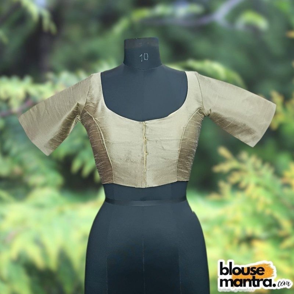Lite gold Semi Raw Silk | Ronud Neck | Back Strap Glass Sleeve