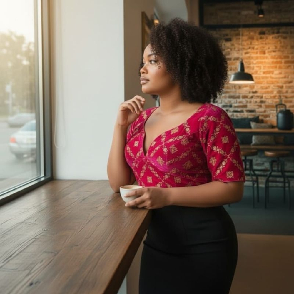 Pink Sequence Work | Front Celeb Cut | Back Oval Cut Glass Sleeve