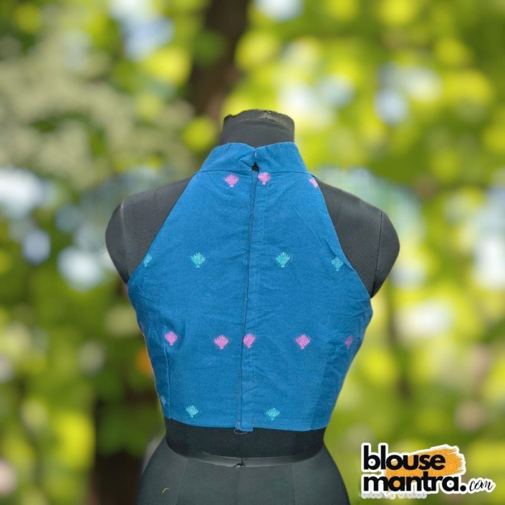 Firoza Blue Jamdani | Halterneck Sleeveless