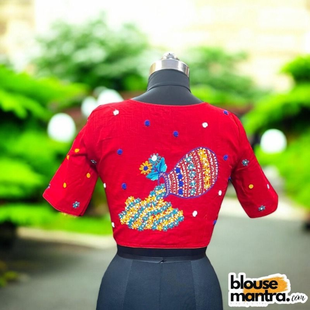 Red Khadi Cotton |Pot Filled with Flower Glass Sleeve