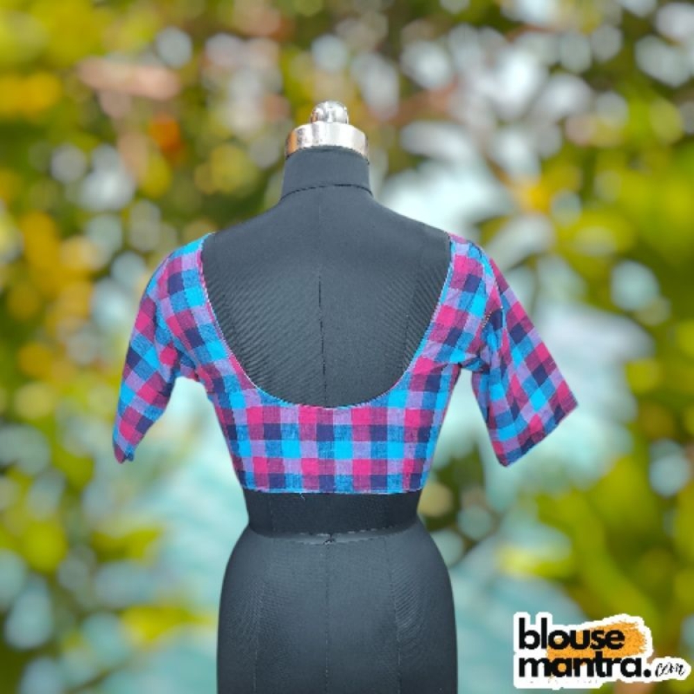 Cotton Check Print | Small Check | Blue , Pink , Navy | Front V Neck | Back Round Neck Glass Sleeve