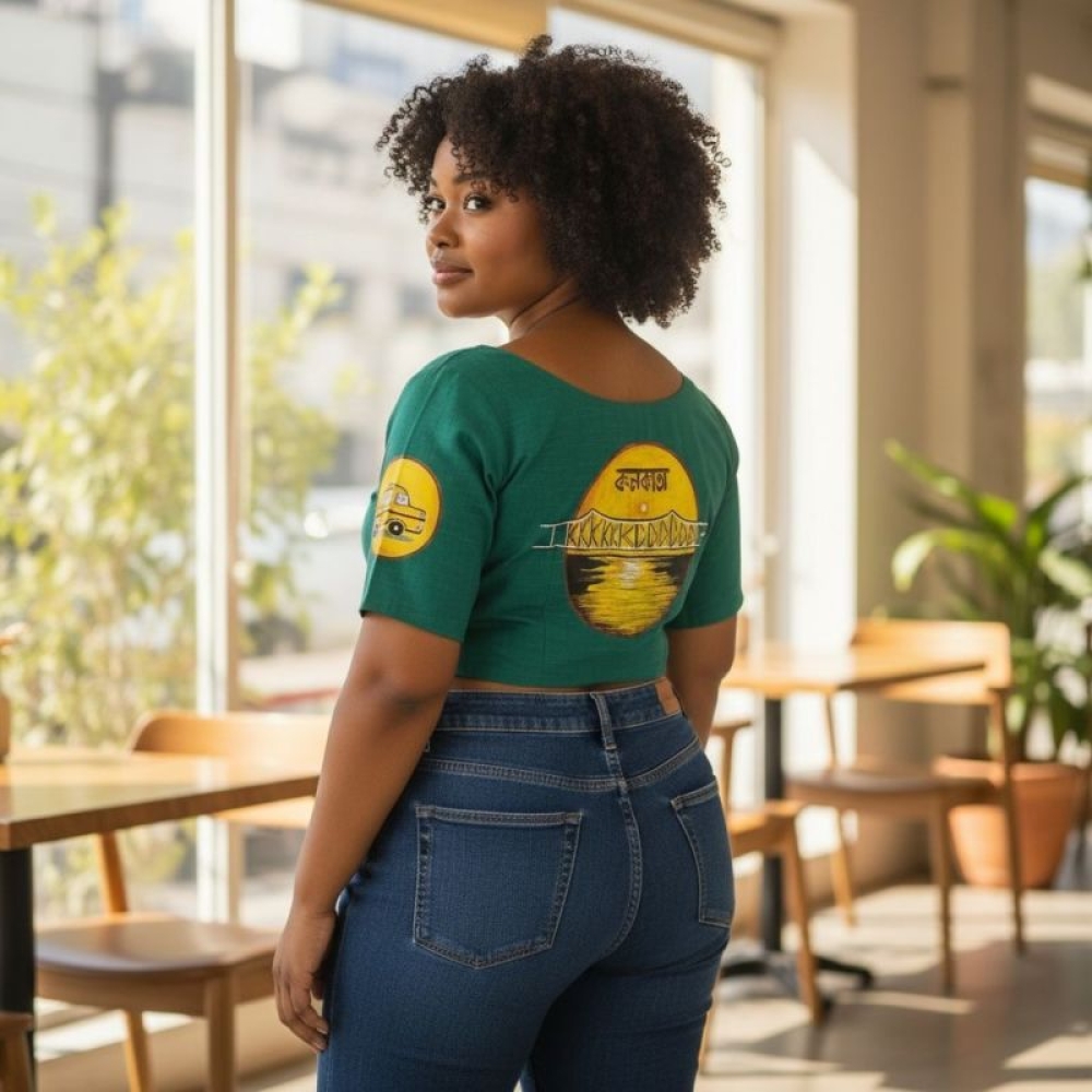 Green Khadi Cotton | Kolkata Paint Glass Sleeve