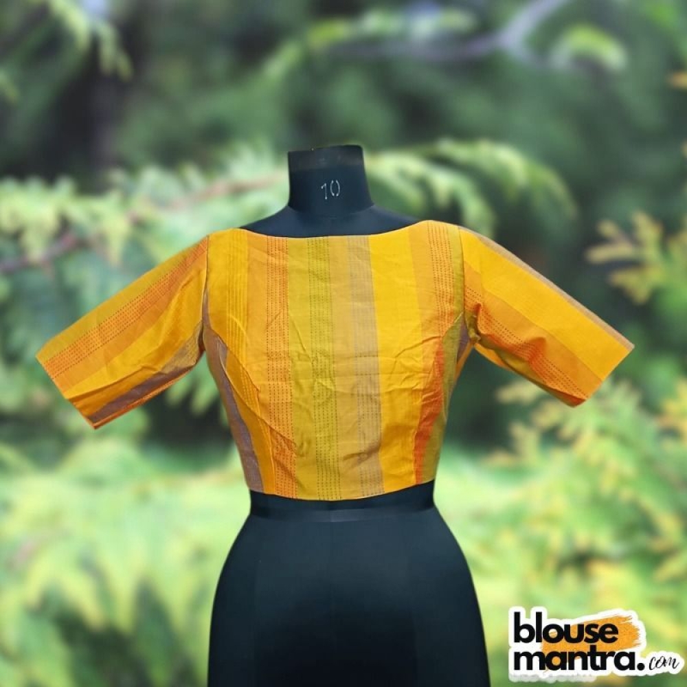 Yellow Kantha Stich Fabric |art Silk | Back Potli | Boat neck Glass Sleeve