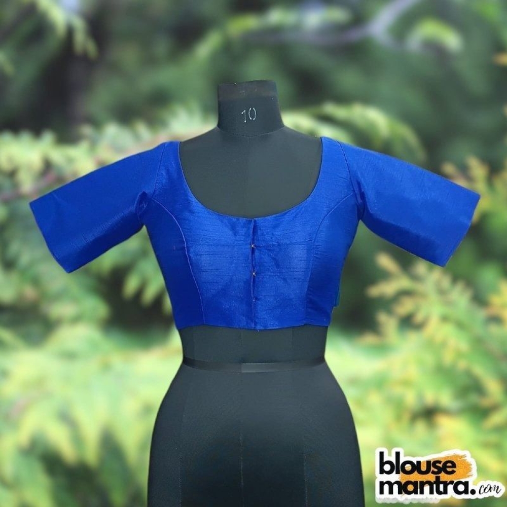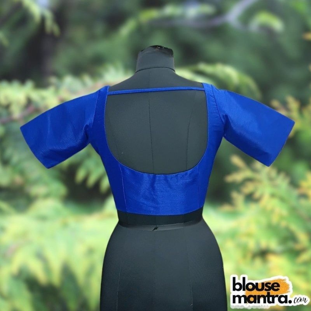Royal Blue Semi Raw Silk | Ronud Neck | Back Strap Glass Sleeve