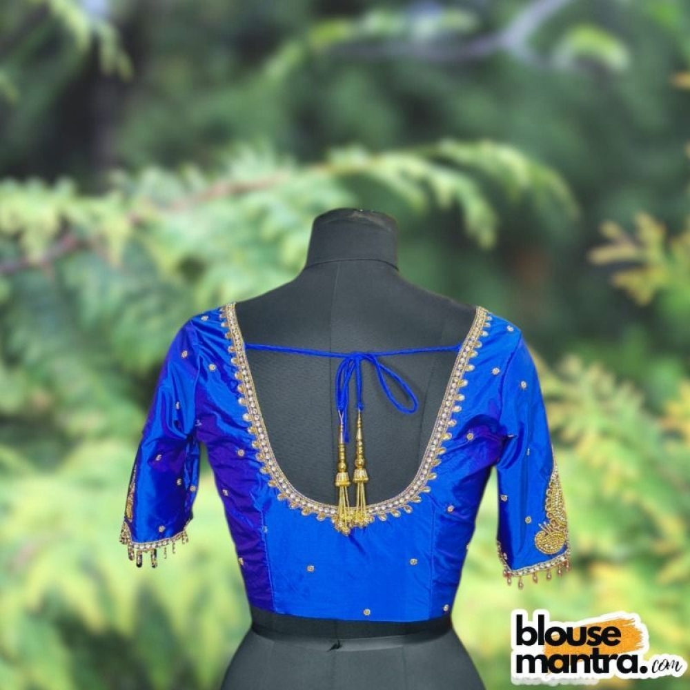 Blue Kolka With Barfi Ari | Round neck | Latkan Glass Sleeve