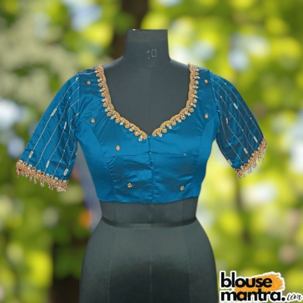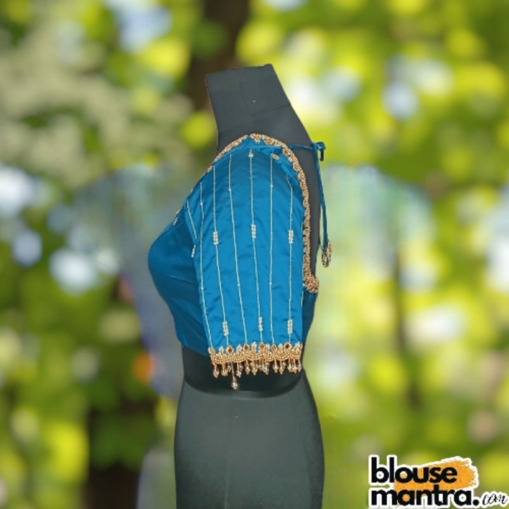 Lite Firoza Blue Prothoma Silk | Stripe Moti On Sleeve Glass Sleeve