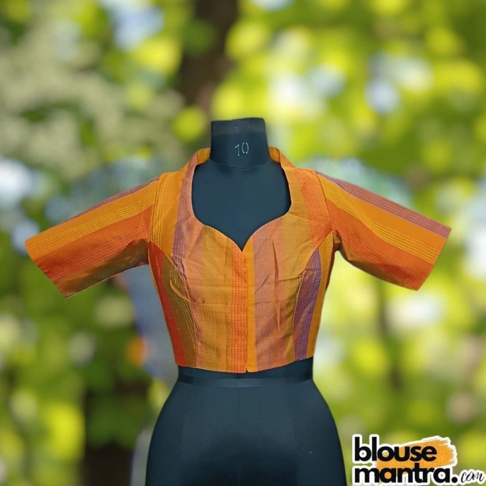 Orange Kantha Stich Fabric |art Silk | Airhostress Neck Glass Sleeve