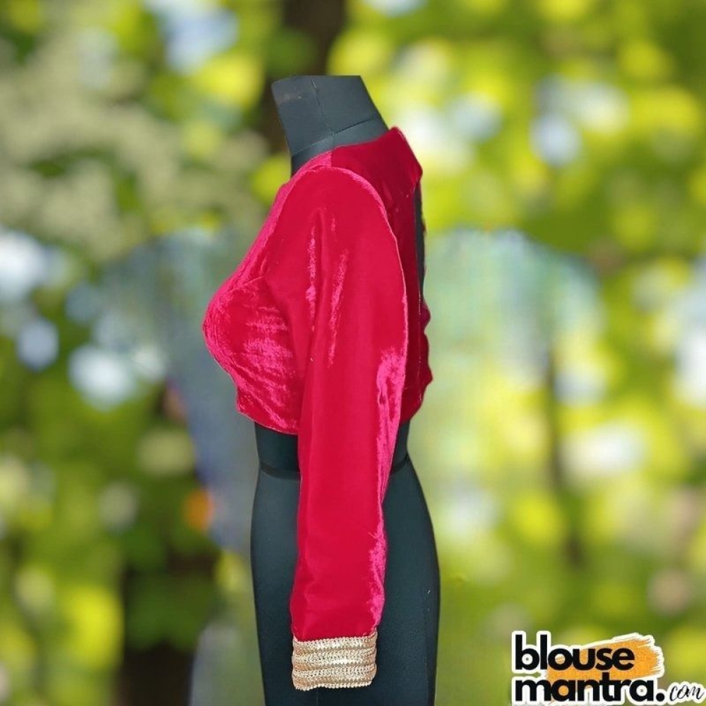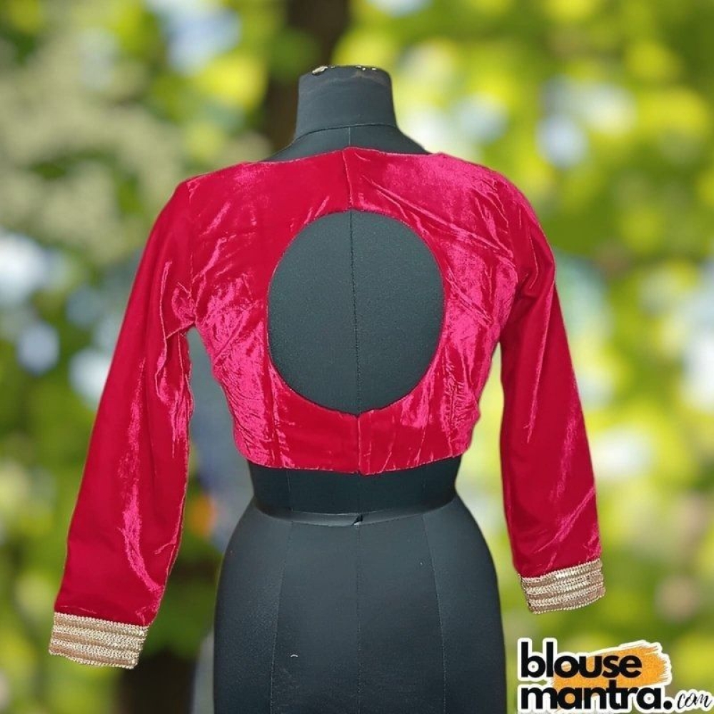 Hot Pink Velvet | Curve Waist | Back Circle Cut | Lace On Hand Full Sleeve