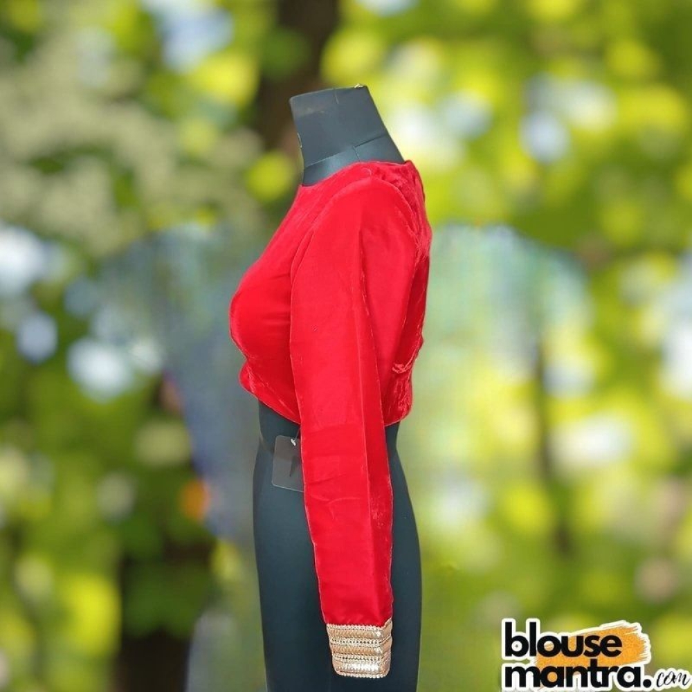 Red Velvet | Curve Waist | Back Circle Cut | Lace On Hand Full Sleeve