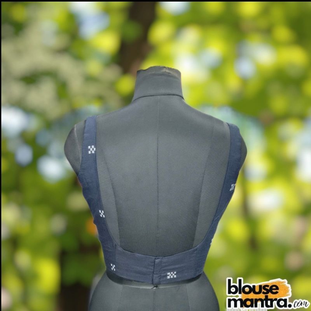 Navy Blue Jamdani White | Round Neck Sleeveless