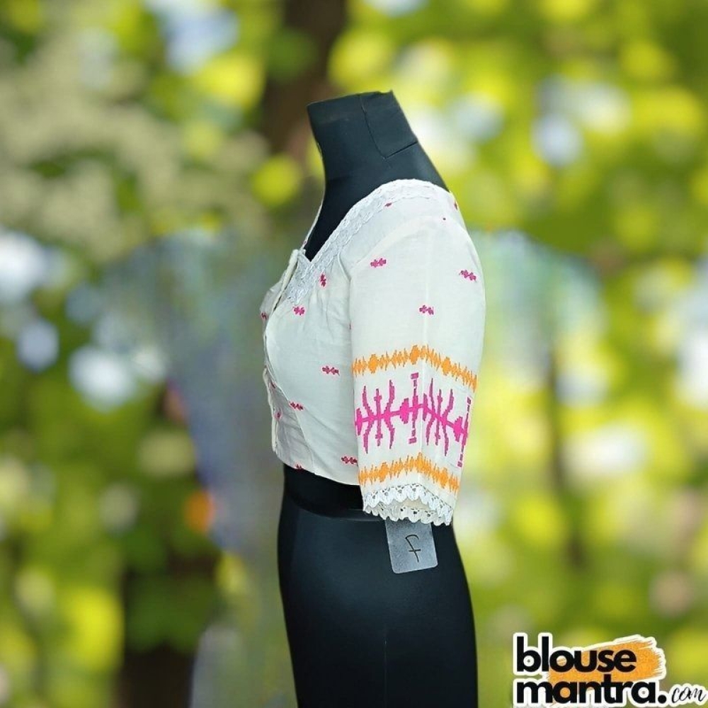 White Embroidery Jamdani | Square Neck | Lace Attached Glass Sleeve