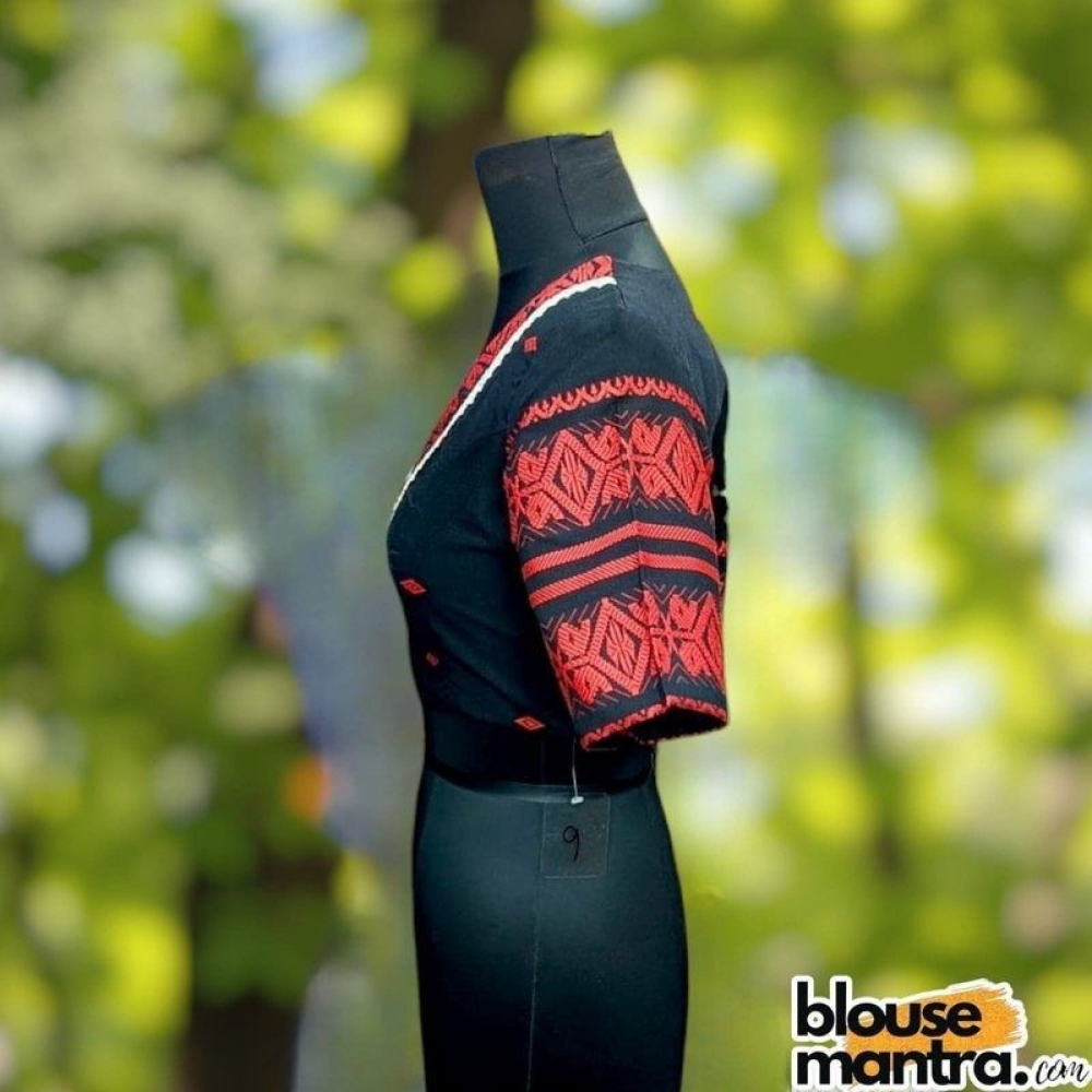 Black Jamdani | Red Weaving |Paar On Coller & Sleeve | Lace Attached Glass Sleeve